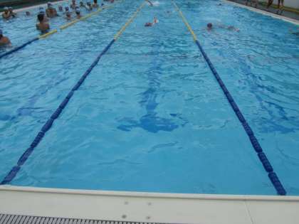 2年体育 安全を意識した良い緊張感と共に水の中で笑顔あふれる生徒の皆さん。