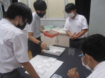 1年理科 実験好きの生徒の皆さんが楽しそうに実験をしていました。
