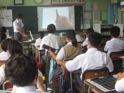 日本語学級 先生の発音の後ついて音読をしていました。英語の学習の仕方も一緒ですね。