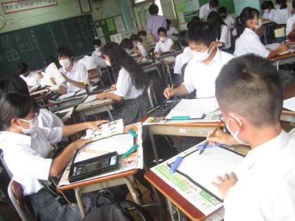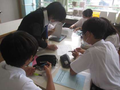 1年理科 実験、1年国語 書道、2年総合 職場体験の準備。
