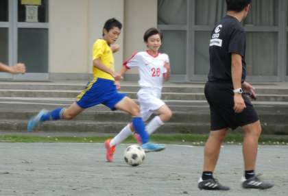 7/18(祝月) 練習試合 石川中 帝京八王子中 その1 公開日 2022/07/19 更新日 2022/07/19 サッカー部 チームになり、初練習試合でした。8人制で行いました。通常コートで8人。いつもより空いているスペースが確実にある、時間もある。それをどうコントロールするのかが課題でした。ボールが来そうな場所を予測すること。人が少ないのだから、これしかできない…のではなく、いろいろな可能性に対応できるポジショニングを取ることが必要です。 いいね(0)