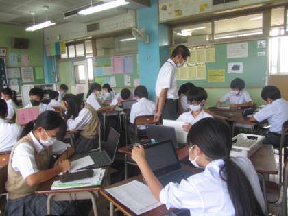 3年英語 先生たちが教科書の内容や表現の意味を深く理解し、体にしみ込ませる工夫をしてくれています。夏休みに向けて「Englishentral」を使う課題も出ました。