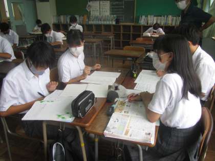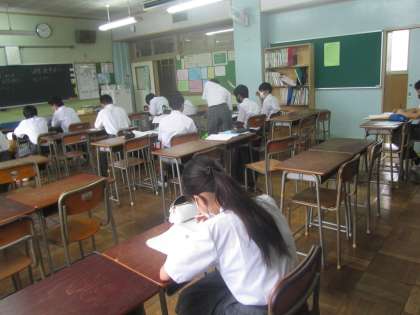 勉強部 1年生から3年生まで一生懸命学習しています。タブレットPCを使う姿、学び合いの姿もあります。