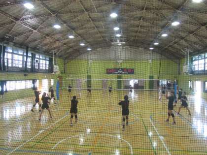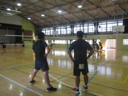 あいさつの素晴らしいバレーボール部員の皆さん、顧問の先生(+島岡先生)が見守る中、自分たちで練習を行っていました。頼もしいですね。