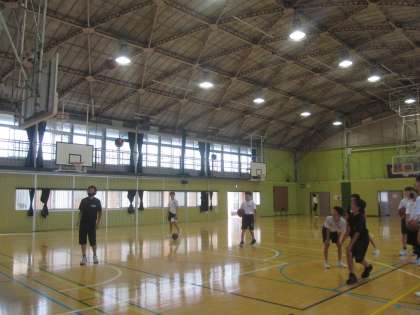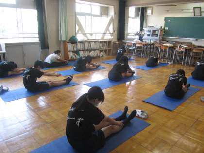 バスケットボール部とダンス部の皆さんも頑張っています。どの部活も、換気、こまめな休憩、水分補給等を行いながら実施していました。