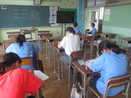 顧問の先生たちの教科にちなんでなのか、夏休み明けの英語単語テスト練習と数学のワークブックを仕上げていました。