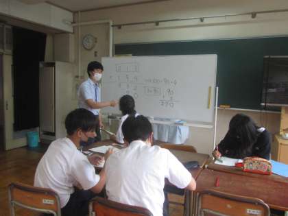 5組数学 集中力が高い皆さん。今日は小学生が体験に来ています。
