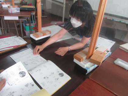 日本語学級 通常学級の宿題に加え、日本語学級の宿題をパーフェクトに仕上げてきた校内生。学習だけではなく、夏の楽しい思い出を話しながら日本語会話練習も。