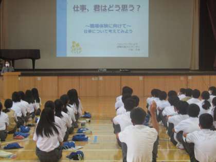 2年キャリア教育 ハローワークの方に職場体験に向けたマナー等のお話をいただきました。