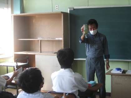 1年数学 黒板消しを擦り切れるまで大切に使ってから新しいものを事務室からいただいたESDのお話から授業がスタート。