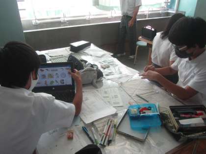 2年家庭科 作品作りのアイデアのために文房具のようにタブレットPCを使っていました。