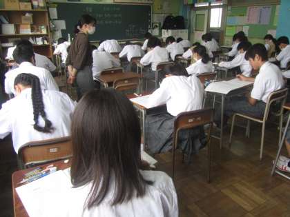 5組・1年 テスト中、生徒の皆さんも監督の先生たちも頑張っていました。