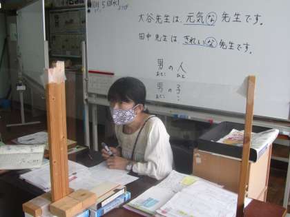 日本語学級 他校からの通級生が一生懸命、表現の練習していました。