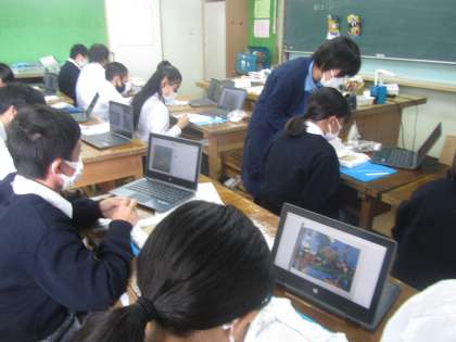 1年美術 名画を見ながら黙々と写真立て作り。 3年音楽 白熱練習!!