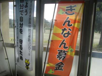 採った「大粒殻付きぎんなん」の生徒会本部役員による配布はふれあいコンサートの日に行います。体育館付近のオレンジののぼりが目印ですので、ぜひ味わっていただきたいと思います。