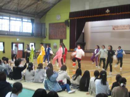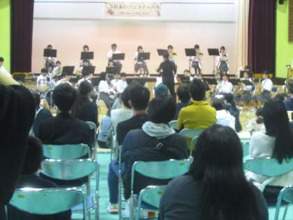 青少対主催のコンサートがありました。小学生の合唱とダンスの後は、本校のダンス部と吹奏楽の演奏を地域・保護者・小学生に楽しんでいただきました。