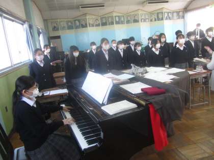 1年音楽 合唱祭の振り返り。実行委員、指揮者、伴奏者、パートリーダーからのお話。「ブレス」を大切に、来年の活躍も楽しみですね。
