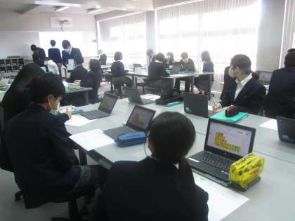 3年技術 生徒が一人一台のPCタブレットでプログラミングをしてアクティくんを動かしていました。
