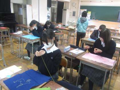 5組家庭科 刺し子、1年理科、1年 ALTとのスピーキングテスト。