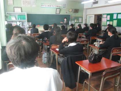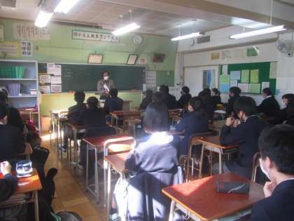 3年進路学習 面接について。真剣な3年生の聴く姿勢に「気迫」を感じました。自信をもって自分の良さをアピールしてほしいと思います。