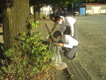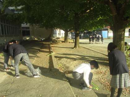 生徒の皆さんが、一粒ずつ丁寧にぎんなんを拾ってくれています。