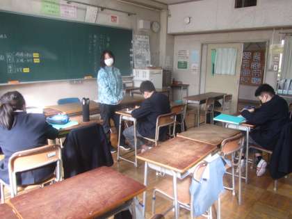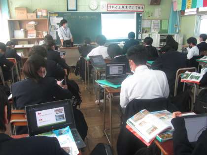 3年 個人写真撮影、5組作文練習、1年理科 タブレットPC活用。
