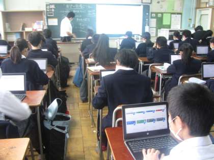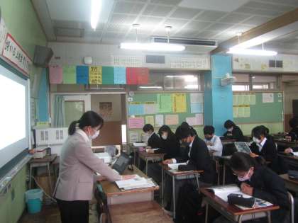 雨上がりの朝、1年生は道徳の授業です。真剣、笑い声・・・学年の先生が輪番で授業を行っています。
