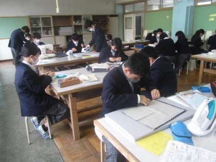 2年家庭科 モノづくりが得意な生徒の皆さん、丁寧に仕上げていました。
