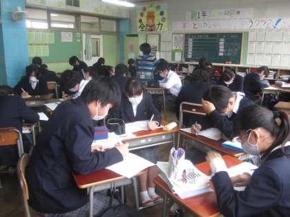 2年数学 「学び合い」が上手にできる生徒の皆さん。あいさつも素晴らしいです。