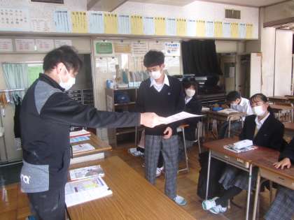 5組 体力調査票の返却をしました。1学期の結果を今後に生かしていきます。