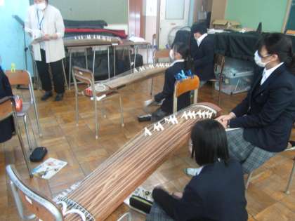 3年音楽 琴、1年美術 写真立て作り、5組美術 切り絵。