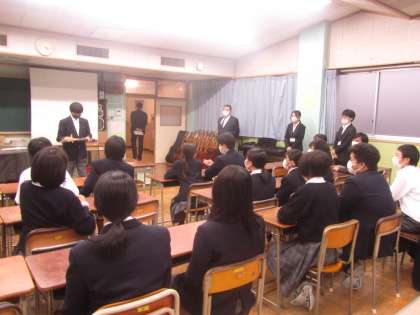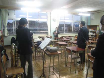 吹奏楽部 インターンシップの学生の大学の先生に参観いただきました。フレンドリーな生徒の皆さんと楽しくおしゃべりいただきました。