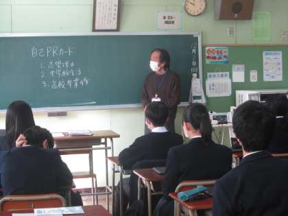 3年理科 理科の話にからめてキャリア教育。来週から校長、副校長面接です。「面接ガイド」と「面接練習シート」を使って、準備をしていきましょう。