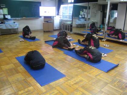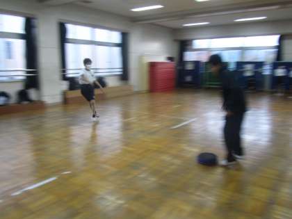 レクリエーション部 やわらかい円盤を使ったサッカーのような新しいスポーツを楽しみました。