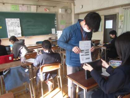 5組 タブレットPCを使ってQRコードの読み取り。