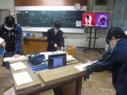 1年技術 のこぎりの使い方。