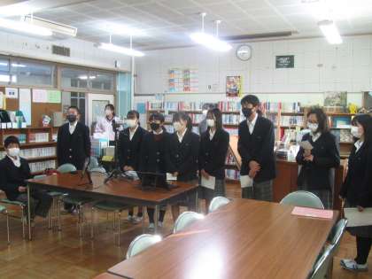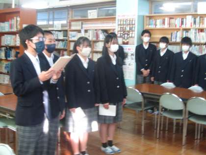 生徒会、学年委員長、図書委員長、美化委員長からお話がありました。