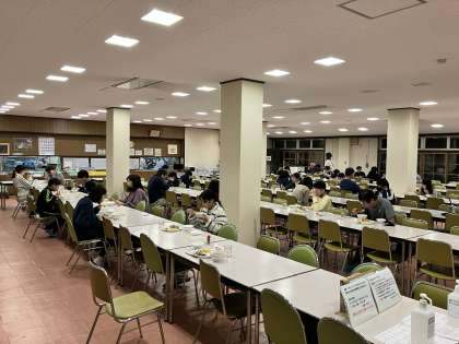 スキー教室、最後の夕食です。 唐揚げと豚汁を美味しくいただきました。