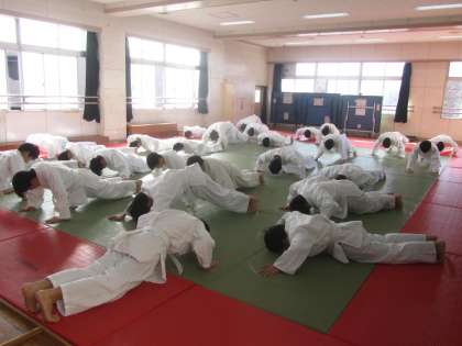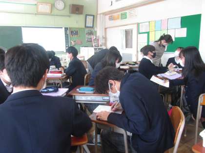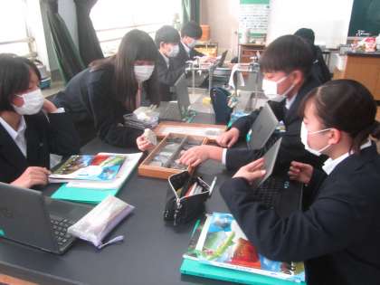 3年数学学び合い、2年柔道、1年理科 タブレット+化石標本。