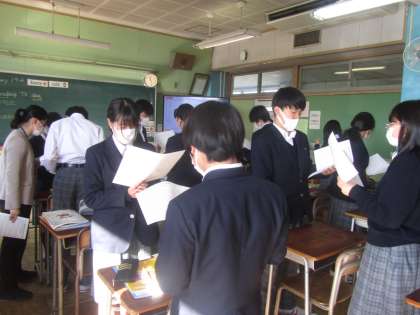 1年英語 1年生の時から、毎時間、しっかり声を出して練習。使える英語として、また4技能英語試験(英検やESAT-Jなど)でも役立ちます。