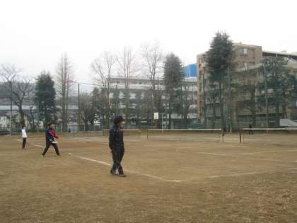 ただいま6度、そして今まで通り変わらず練習している生徒の皆さんと見守る先生たち。(ソフトテニス部、陸上部、野球部)