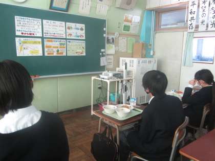 給食センターの方が、1年生を対象に昼の放送で「食育」を行ってくださいました。