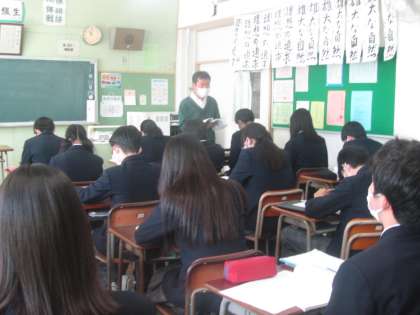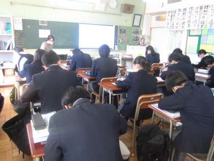 3年生、さすがの授業態度。すでに進路が決定した生徒もいますが、「進路は団体戦」ということで、今までと変わらずよく取り組んでいます。他者への気遣いができる優しい3年生です。