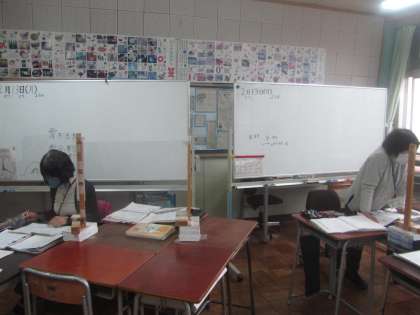 日本語学級 校外生2名が一生懸命、学習中。