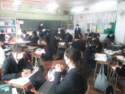 「あいさつ」については、絶対に見落とすことがないユニバーサルなあいさつができる3年3組の生徒のあいさつをはじめ、どの学年・学級でもマスクにもかかわらず目で笑顔を作ってくれたり、授業の先生が話している最中等、声が出せないときはうなづきで示してくれたりと、表現力の豊かさに感心します。私も学ぶことがたくさんあります。