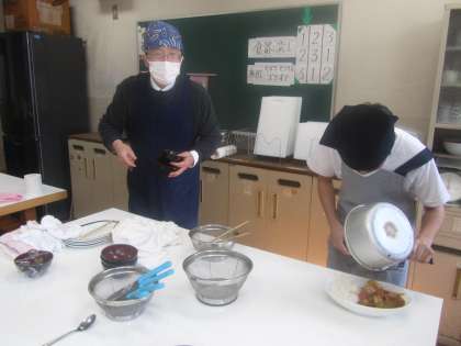 5組 自分の分は自分で作る調理。今日はカレーです。
