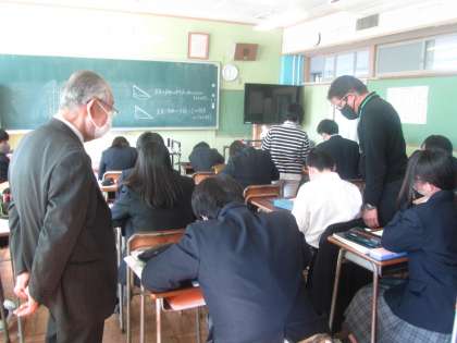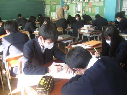 どのクラスもよく取り組んでいます。授業態度が市の学力調査にも表れています。上位層が増え、苦手な生徒の割合が減ってきています。モチベーションを上げられるよう、先生たちがいろいろな工夫をしていました。