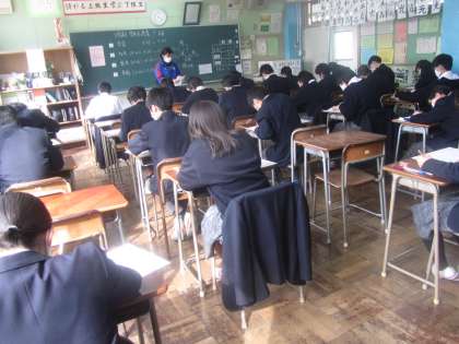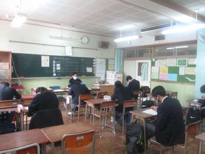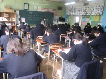 1年生、5組3年。よい緊張感の中、一生懸命に取組んでいます。