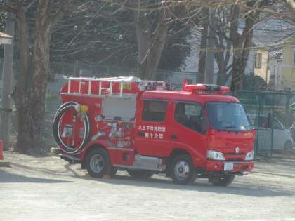 校庭に消防車が来ているのは2時間目からの防災フェスタのためです。