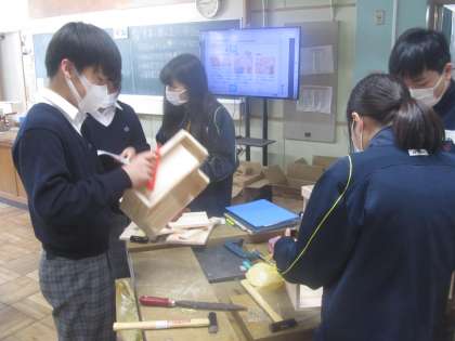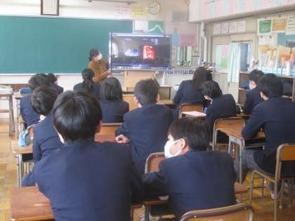 5組 明日から産休に入る先生から赤ちゃんの写真を見せてもらってワクワクする生徒の皆さん。次は、親子で生徒の活躍を見に来てくれる予定です。